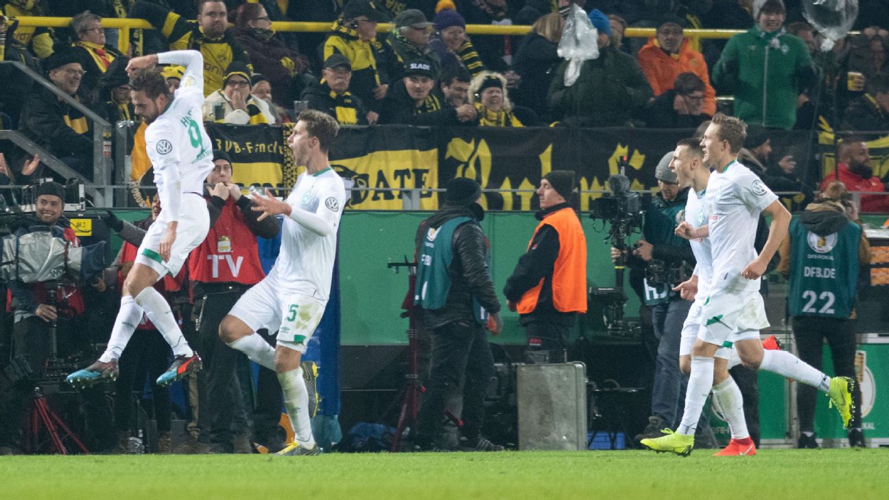 Borussia Dortmund Werder Bremen (2) 3 (4) 3 FT-Pens Werder Bremen wins 4-2 on Penalty Kicks. Game Details Live football odds with bet365. Bet Now » GameCast Lineups and Stats Werder Bremen are through to the German Cup quarterfinals after prevailing in penalties over Borussia Dortmund in an instant classic. Borussia Dortmund were knocked out of the German Cup by Werder Bremen following a penalty shootout after a thrilling 3-3 draw at home on Tuesday, with the Bundesliga leaders twice throwing away the lead in extra time. Bremen, who are 10th in Germany's top flight, took a fifth minute lead through Milot Rashica but Dortmund captain Marco Reus levelled in first half stoppage time from a free kick but had to be substituted due to injury after the interval. U.S international Christian Pulisic put the...from ESPN FC News
